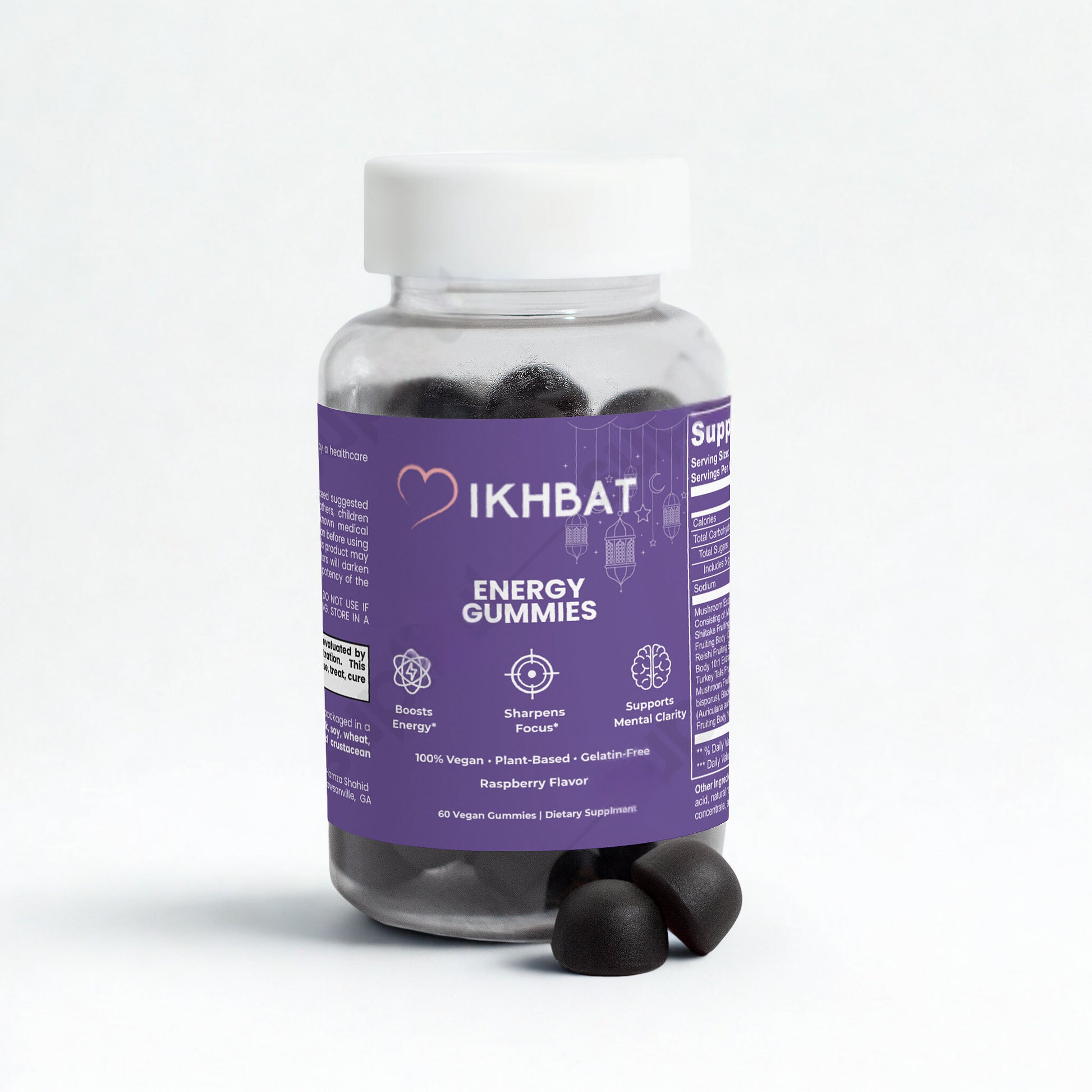 If you’re looking for a natural way to fuel your mind, body, and soul, Ikhbat Mushroom Extract Complex Energy Gummies are your perfect daily companion. Designed for those who strive to perform at their best in every aspect of life—whether it’s Prayer, Quran recitation, work, studies, or fitness—these are Plant Based and Vegan-friendly energy gummies offer a unique blend of 10 powerful mushroom extracts that support mental clarity, sustained energy, and overall well-being.